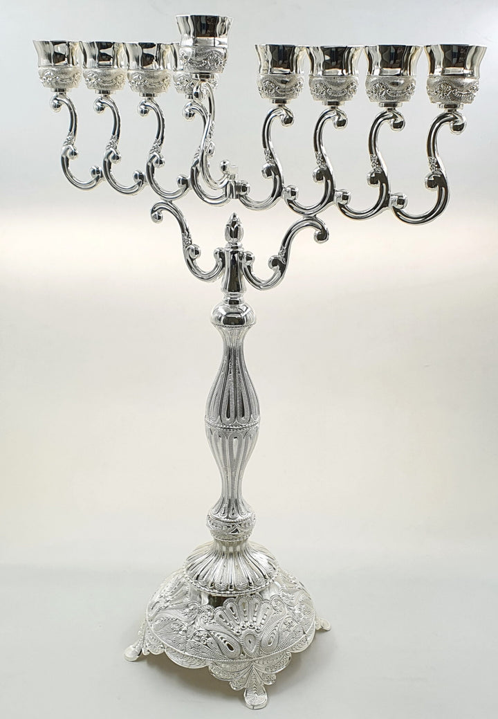 חנוכייה ״תנתי״ - חנוכיית כסף מעוצבת – בסגנון קלאסי ומהודר